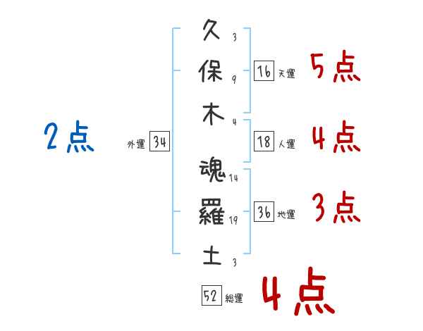 久保木魂羅土さんの画数の鑑定結果