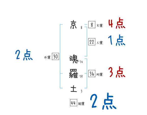 外運![]() | 京魂羅土さんの外運は30画の2つ星!浮き沈みの激しさに注意しましょう。 生活面を象徴する運勢です。外部から受ける影響力を表し、結婚運、家庭運や職場、環境への順応性を表します。 |