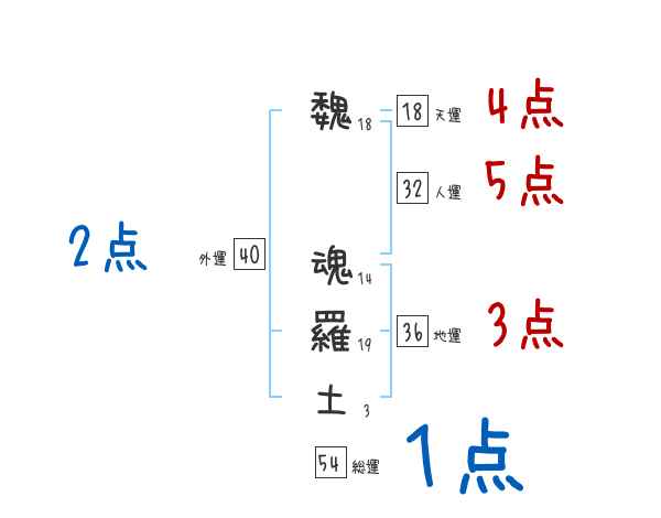 魏魂羅土さんの画数の鑑定結果