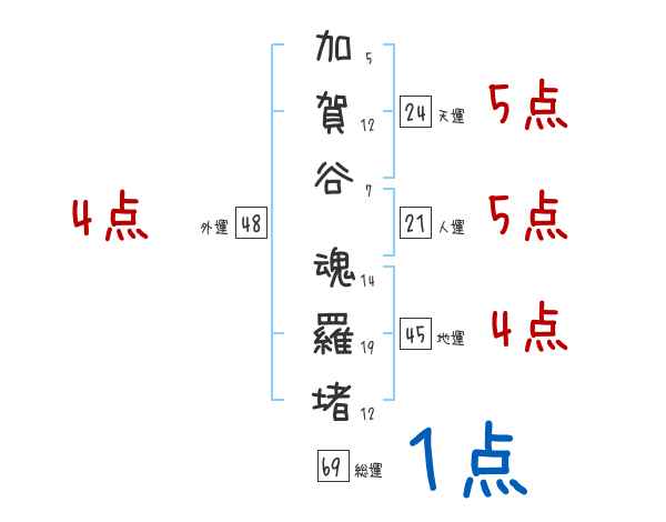 加賀谷魂羅堵さんの画数の鑑定結果