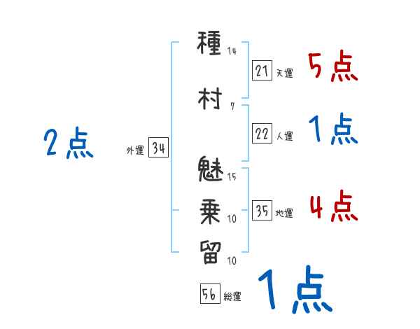 種村魅乗留さんの画数の鑑定結果