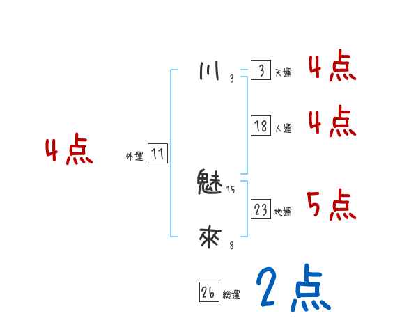 川魅來さんの画数の鑑定結果
