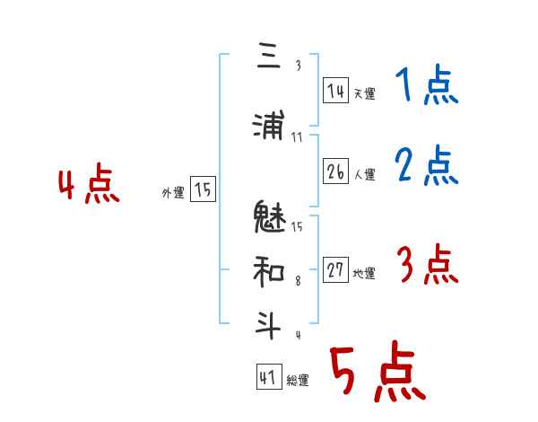 三浦魅和斗さんの画数の鑑定結果