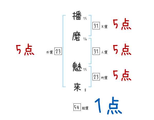 播磨魅来さんの画数の鑑定結果