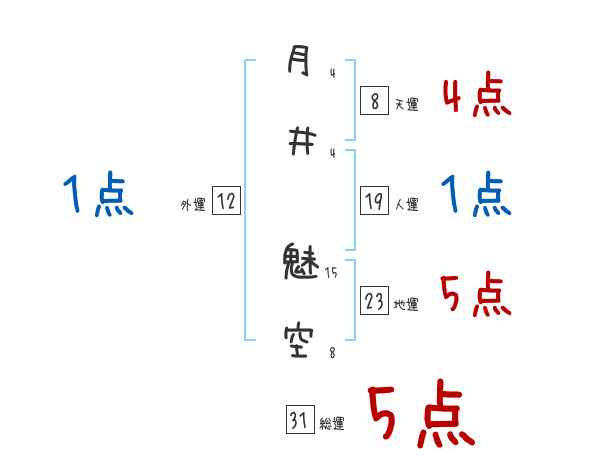 総運![]() | 月井魅空さんの総運は31画の5つ星!社交性があり判断力に優れる。順風満帆な人生で円満な生活。 あなたの人生を表す1番重要な運勢です。生涯を通じて影響する総合運となり、主に50歳以降の晩年期に影響を及ぼします。 |