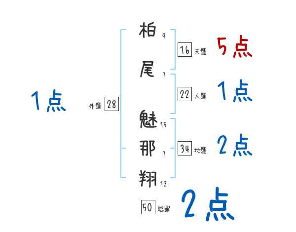 外運![]() | 柏尾魅那翔さんの外運は28画の1つ星!家庭環境に注意。スポーツで活躍できる能力があるかも。 生活面を象徴する運勢です。外部から受ける影響力を表し、結婚運、家庭運や職場、環境への順応性を表します。 |