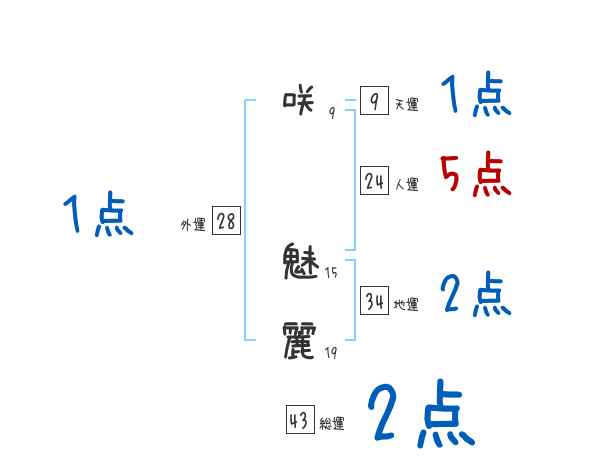 咲魅麗さんの画数の鑑定結果