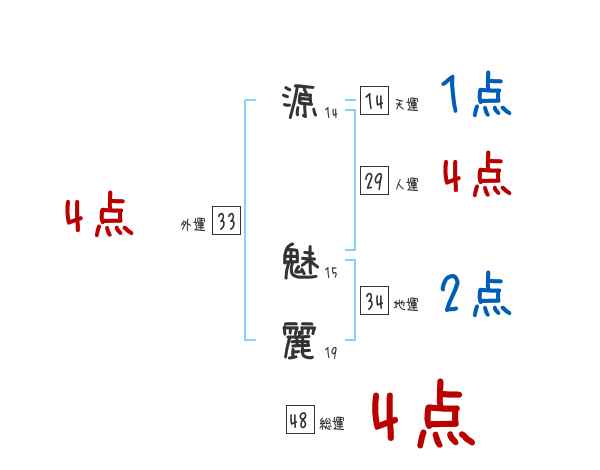 源魅麗さんの画数の鑑定結果