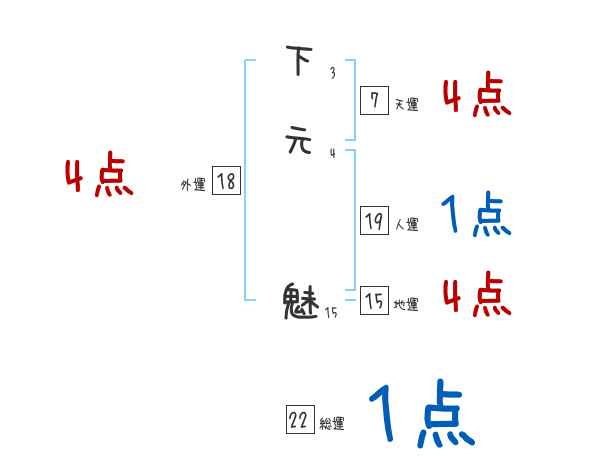 外運![]() | 下元魅さんの外運は18画の4つ星!情熱的で剛気。忍耐力があり信頼される。 生活面を象徴する運勢です。外部から受ける影響力を表し、結婚運、家庭運や職場、環境への順応性を表します。 |