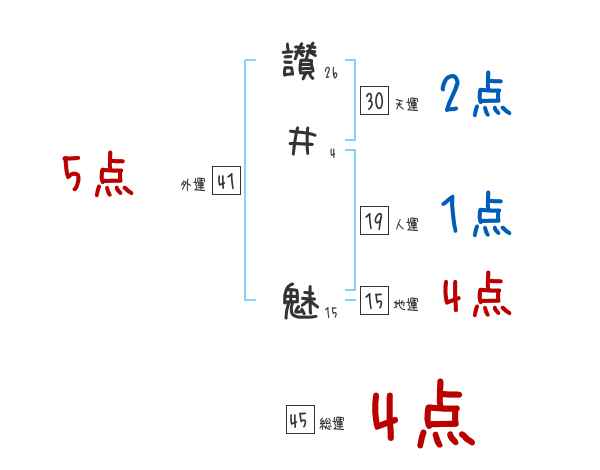 天運![]() | 讃井魅さんの天運は30画の2つ星!浮き沈みの激しさに注意しましょう。 家系が持つ宿命的な運勢を表します。祖先から受け継いだ苗字ですので自分の力が及びません。家柄を象徴します。 |