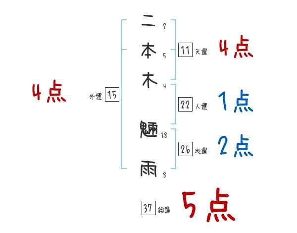 二本木魎雨さんの画数の鑑定結果