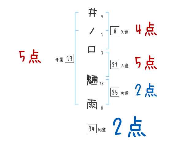 天運![]() | 井ノ口魎雨さんの天運は8画の4つ星!勤勉家。根気強く努力し成功する。忍耐力がある。 家系が持つ宿命的な運勢を表します。祖先から受け継いだ苗字ですので自分の力が及びません。家柄を象徴します。 |