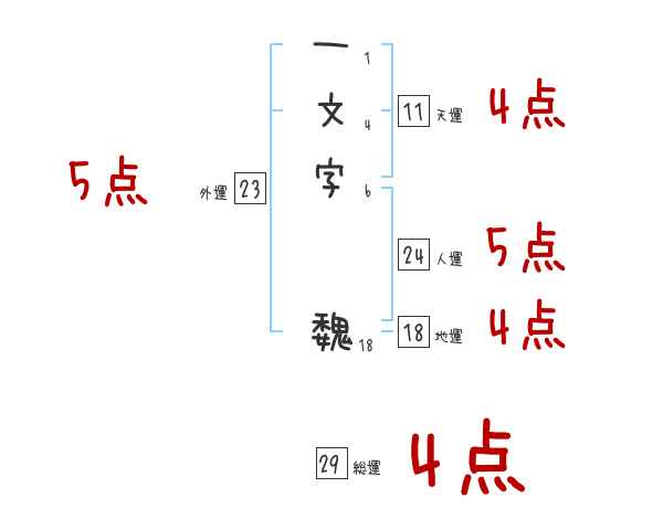 一文字魏さんの画数の鑑定結果