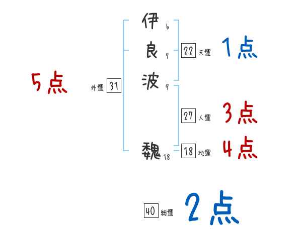 伊良波魏さんの画数の鑑定結果
