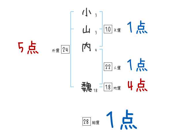 天運![]() | 小山内魏さんの天運は10画の1つ星!不安を感じやすい傾向。ストレスを抱えないように注意しましょう。 家系が持つ宿命的な運勢を表します。祖先から受け継いだ苗字ですので自分の力が及びません。家柄を象徴します。 |