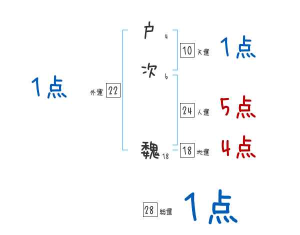 戸次魏さんの画数の鑑定結果