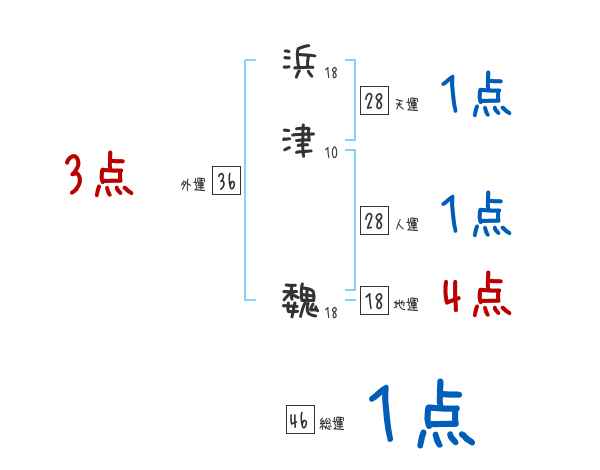 外運![]() | 浜津魏さんの外運は36画の3つ星!先見性が豊かです。多少神経質で苦労することも。 生活面を象徴する運勢です。外部から受ける影響力を表し、結婚運、家庭運や職場、環境への順応性を表します。 |