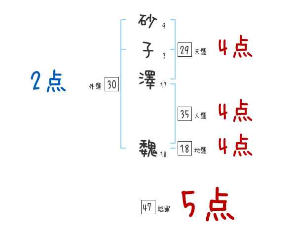 砂子澤魏さんの画数の鑑定結果