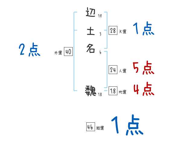 天運![]() | 辺土名魏さんの天運は28画の1つ星!家庭環境に注意。スポーツで活躍できる能力があるかも。 家系が持つ宿命的な運勢を表します。祖先から受け継いだ苗字ですので自分の力が及びません。家柄を象徴します。 |