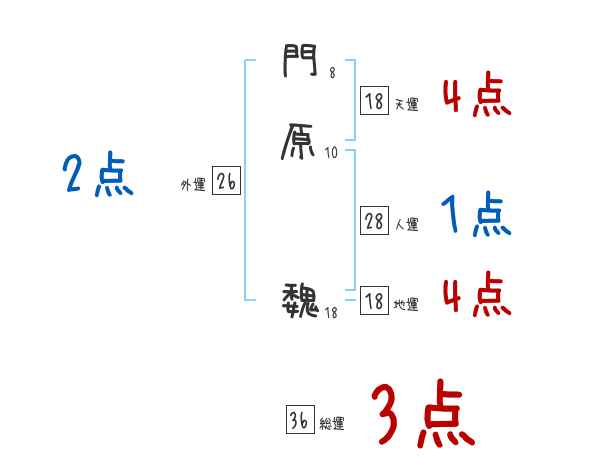 外運![]() | 門原魏さんの外運は26画の2つ星!波瀾万丈かも。信頼できる人を大事にしましょう。 生活面を象徴する運勢です。外部から受ける影響力を表し、結婚運、家庭運や職場、環境への順応性を表します。 |