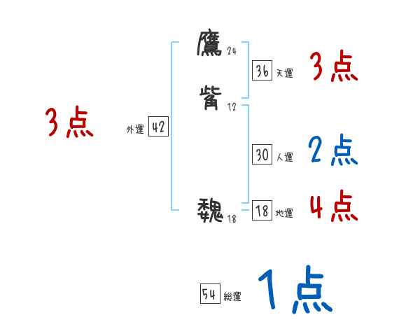 鷹觜魏さんの画数の鑑定結果