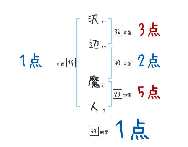 沢辺魔人さんの画数の鑑定結果