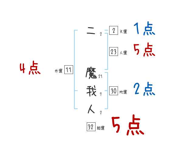 二魔我人さんの画数の鑑定結果