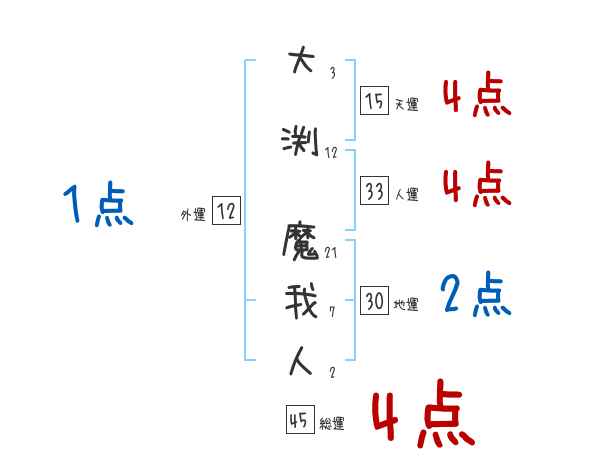 天運![]() | 大渕魔我人さんの天運は15画の4つ星!人徳があり出世する。順調に物事を進め円満な人生。 家系が持つ宿命的な運勢を表します。祖先から受け継いだ苗字ですので自分の力が及びません。家柄を象徴します。 |