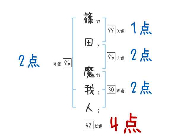 篠田魔我人さんの画数の鑑定結果