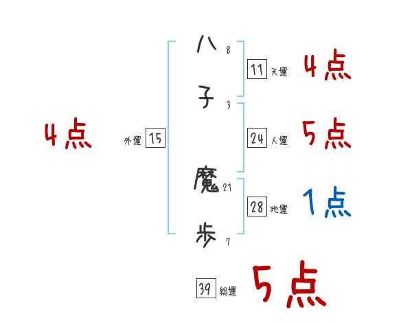 八子魔歩さんの画数の鑑定結果