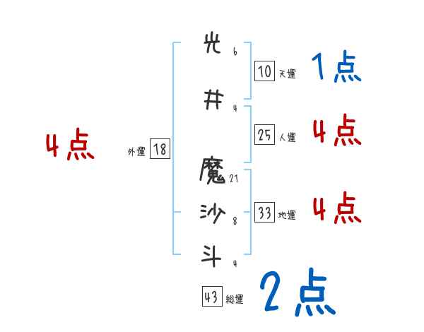 外運![]() | 光井魔沙斗さんの外運は18画の4つ星!情熱的で剛気。忍耐力があり信頼される。 生活面を象徴する運勢です。外部から受ける影響力を表し、結婚運、家庭運や職場、環境への順応性を表します。 |
