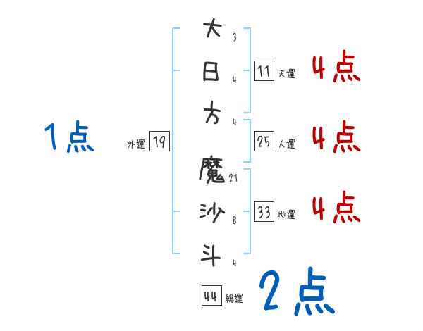 大日方魔沙斗さんの画数の鑑定結果