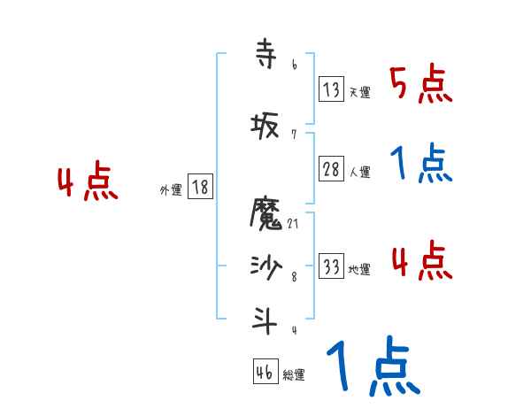 寺坂魔沙斗さんの画数の鑑定結果