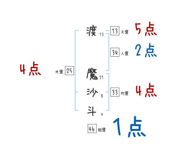 渡魔沙斗さんの画数の鑑定結果