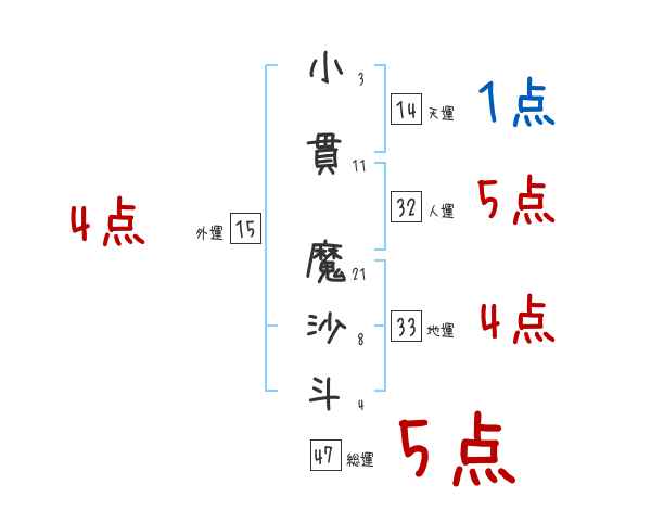 小貫魔沙斗さんの画数の鑑定結果