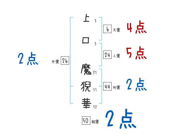 上口魔猊華さんの画数の鑑定結果