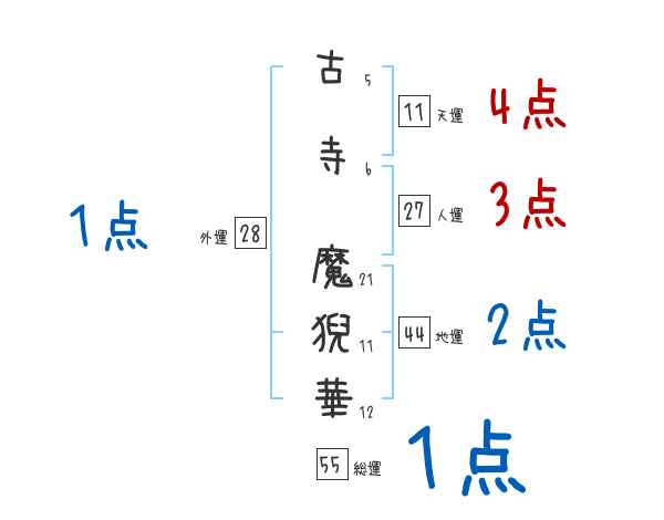古寺魔猊華さんの画数の鑑定結果