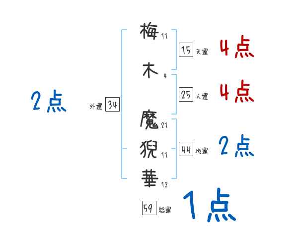 梅木魔猊華さんの画数の鑑定結果
