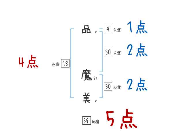 品魔美さんの画数の鑑定結果