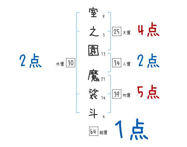 室之園魔裟斗さんの画数の鑑定結果