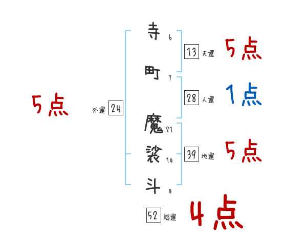 寺町魔裟斗さんの画数の鑑定結果