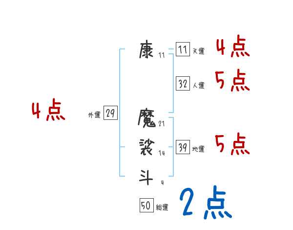 康魔裟斗さんの画数の鑑定結果