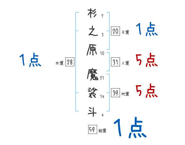 人運![]() | 杉之原魔裟斗さんの人運は31画の5つ星!社交性があり判断力に優れる。順風満帆な人生で円満な生活。 性格や才能などを表す2番目に重要な運勢です。人間関係や協調性、社会的な成功に影響します。主に20歳から50歳ぐらいまでの中年期の運勢を表します。 |