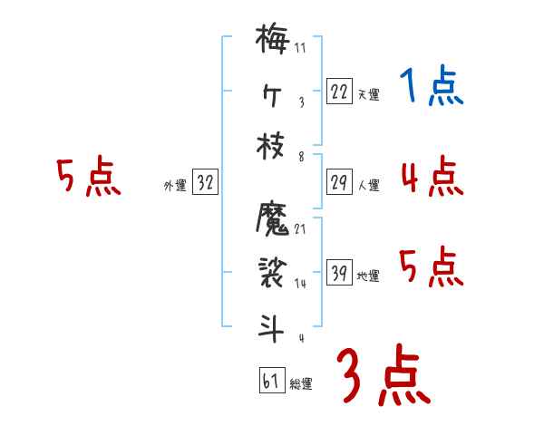 梅ヶ枝魔裟斗さんの画数の鑑定結果