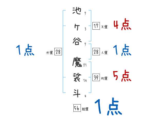 池ヶ谷魔裟斗さんの画数の鑑定結果