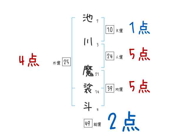 人運![]() | 池川魔裟斗さんの人運は24画の5つ星!家庭運が良く順調な人生。金運にも恵まれる。 性格や才能などを表す2番目に重要な運勢です。人間関係や協調性、社会的な成功に影響します。主に20歳から50歳ぐらいまでの中年期の運勢を表します。 |