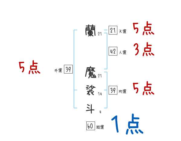蘭魔裟斗さんの画数の鑑定結果