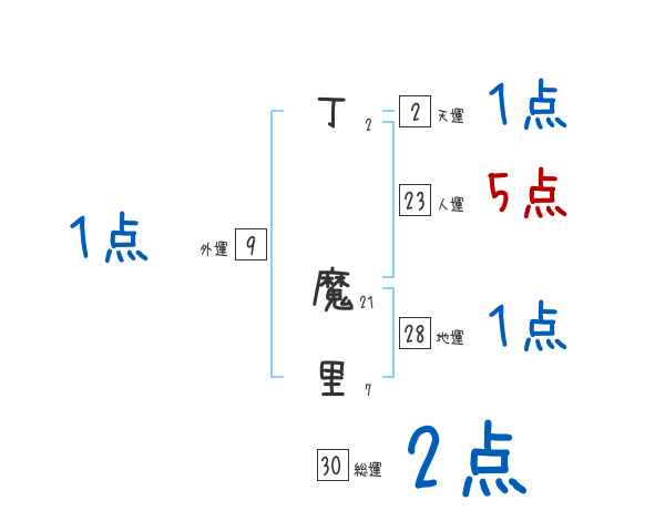 丁魔里さんの画数の鑑定結果