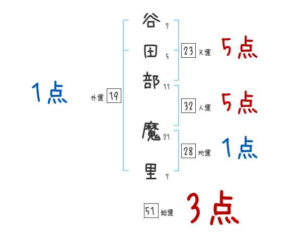 谷田部魔里さんの画数の鑑定結果