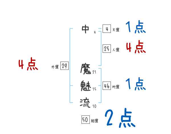 中魔魅流さんの外運は29画の4つ星